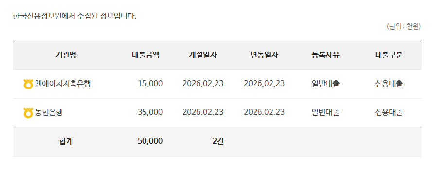 계약일자 : 2026.02.10 종료일자 : 2026.02.23 진행기간 : 14일 고객직군 : 일반법인 고객연봉 : 3450만 재직기간 : 2023.03.15 입사 / 3년가량 신용점수(진행전) :KCB 651점 NICE 784점 신용점수(진행후) :KCB 813점 NICE 935점 KCB 162점▲ NICE 151점▲ 대출금액(진행전) : 4020만 대출금액(진행후) : 5000만 추가대출 980만▲ 월불입금(진행전) : 892,035원 월불입금(진행후) : 1,017,269원 월불입금 125,234원▲